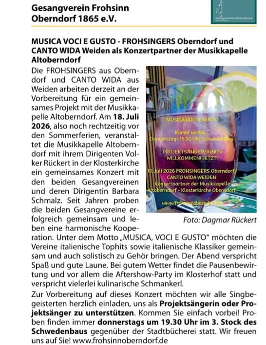 Derzeit sind wir in den Proben in Vorbereitung auf das anstehende Konzert mit der Musikkapelle Altoberndorf e.V..